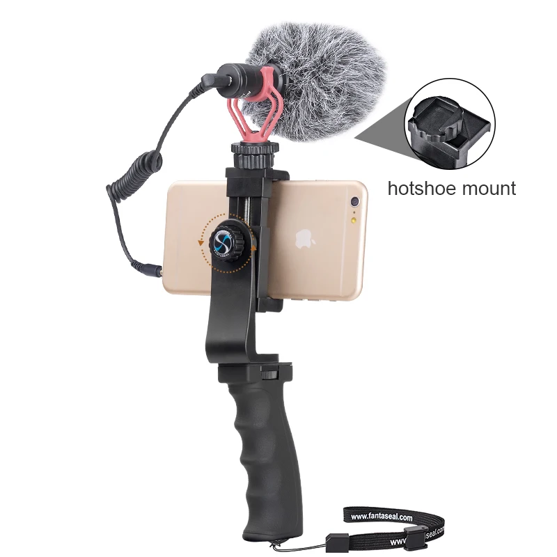 TOP Cell Phone Hand Grip Holder Smartphone Stabilizer Microphone Video Filming Set for iPhone XR XS XSM